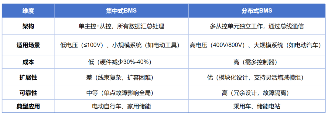 适用场景主流量产电动车普遍采用分布式架构,工商储和大储因电芯数量众多,结构复杂,多采用分布式架构