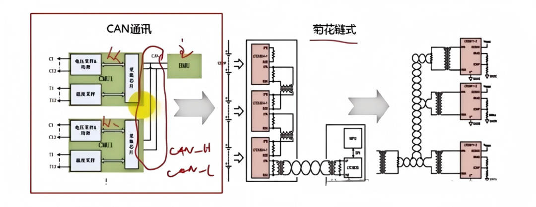 分布式BMS将功能分散到多个子模块(如从控单元CSC、主控单元BMU),每个模块独立完成局部数据采集与初步处理,通过总线或链式通信实现协同。