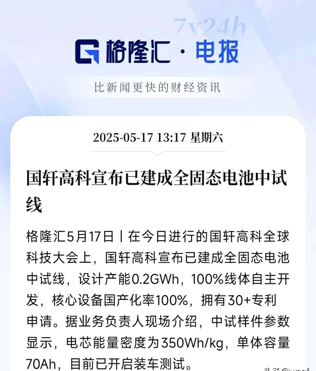 当国轩高科的实验室里传出一个爆炸的消息,全固态电池中试线正式贯通,核心设备国产化率100%,甚至开始装车测试的时候,一辆搭载“G垣准固态电池”的样车行驶里程已经突破一万公里。