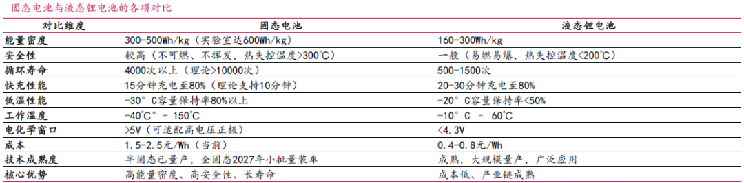 而固态电池作为一种采用固态电解质替代传统液态电解液的新型电池技术,它通过固态材料实现锂离子的传导,从根本上解决了液态锂电池的安全隐患和能量密度瓶颈。相比传统的液态锂电池,固态电池凭借(1)更高的能量密度,(2)更好的安全性能和(3)更长的循环寿命;因此能够更好适配eVTOL。