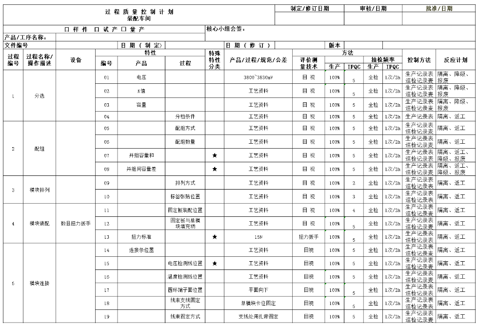 PACK制造工艺系列:新能源PACK工艺文件——过程质量控制计划(附源文件)