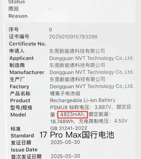 一个显然的现象是当前头部手机品牌的高端机型,并没有安装超大电池。以荣耀来说,尽管Power机型的电池容量已经达到了8000mAh,但其10月份发布的Magic8系列,仍搭载7000/7200mAh的电池。而iPhone17Promax国行版的电池容量,则仅仅只有4823mAh。