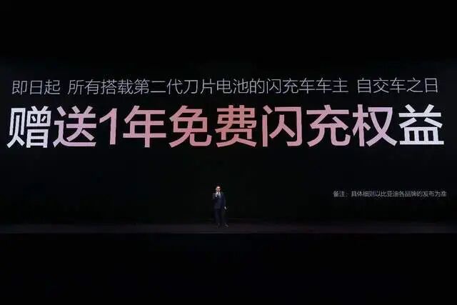 此外,为了推广闪充,发布会上还承诺所有搭载第二代刀片电池的闪充车车主,自交车之日起,在全国闪充站可享受1年的免费闪充权益。